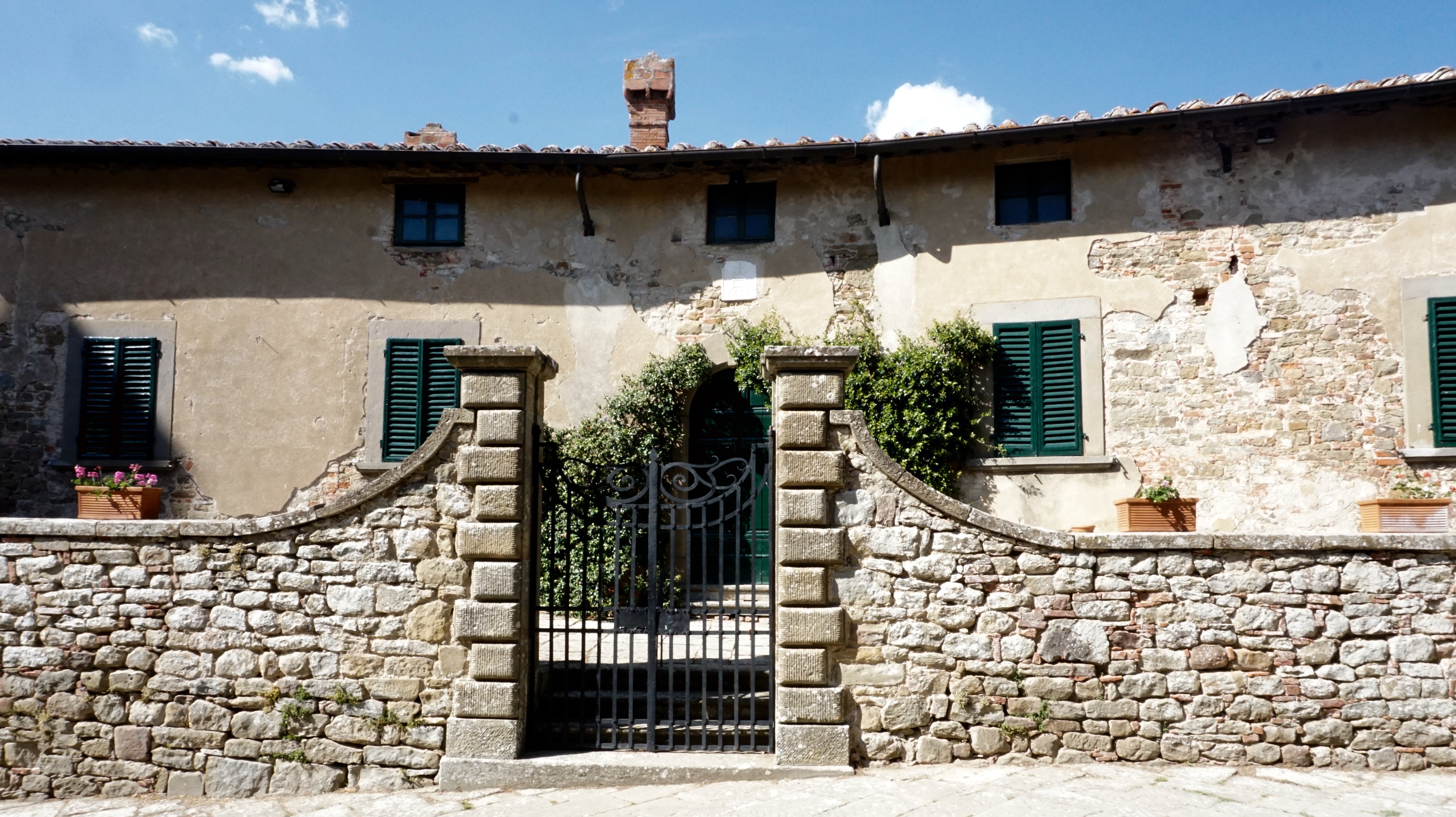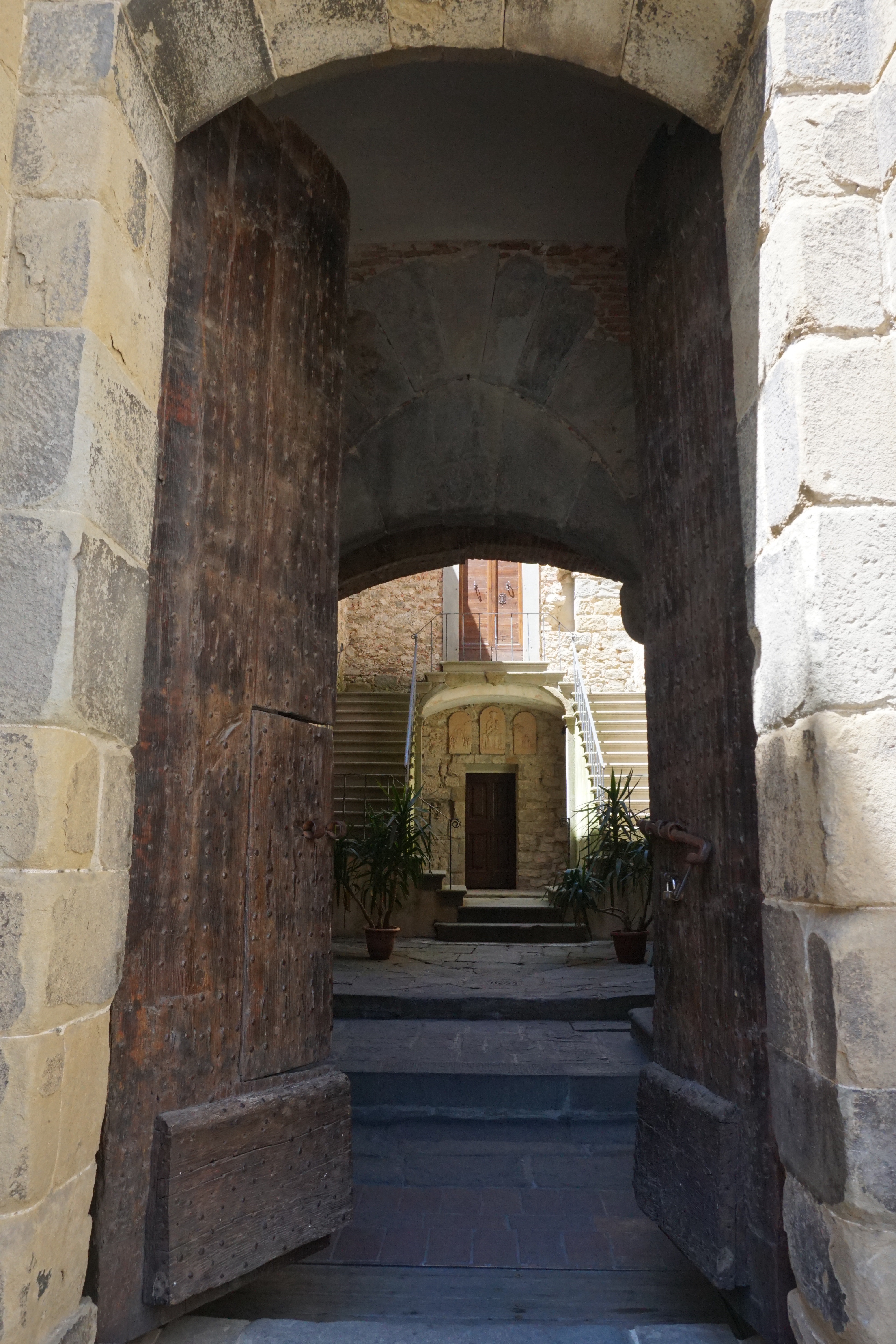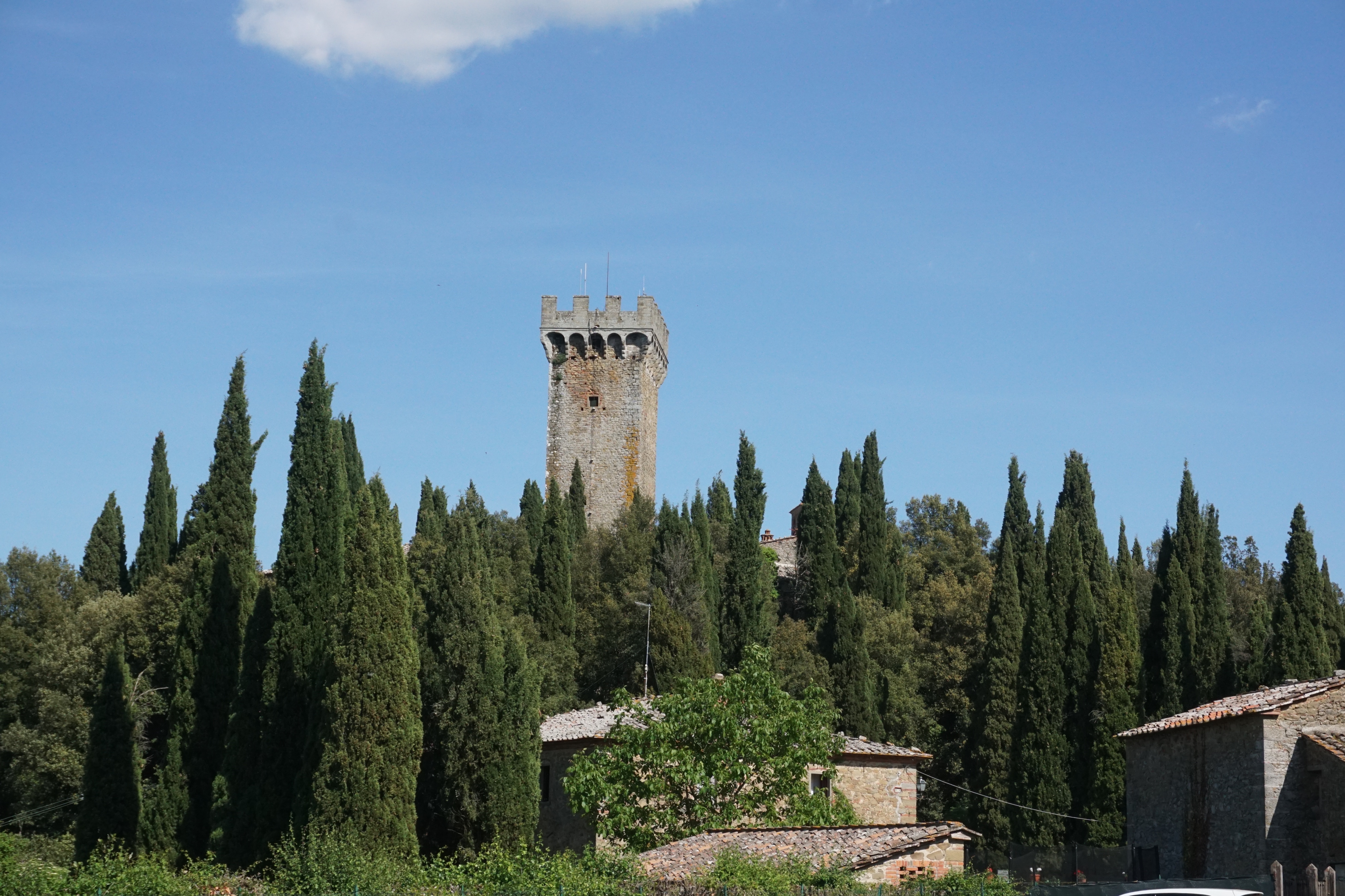 We had an amazing time walking around the town and seeing all of the historical buildings. Then we met up with Maria Vittoria and headed for lunch. Had a great feast that included plates of meats and cheeses and bruschetta. Next course was three different types of pastas, then John and Francesco ate beef too! finished off with coffee and tiramisu. We then headed to see one of the agritourismos that Maria’s family owns…..beautiful! We then drove way up into the hillside to view the Castle of Garganzo. It has a 13th century gate and 14th century Roman church. it was considered to be a fortified Tuscan agricultural hamlet. One of the things it is famous for is that it is where Dante was exiled to when he suffered for not going along with the politics of that time and refusing to pay taxes. It is still in beautiful shape, but they have closed it so you are only able to tour the outside.