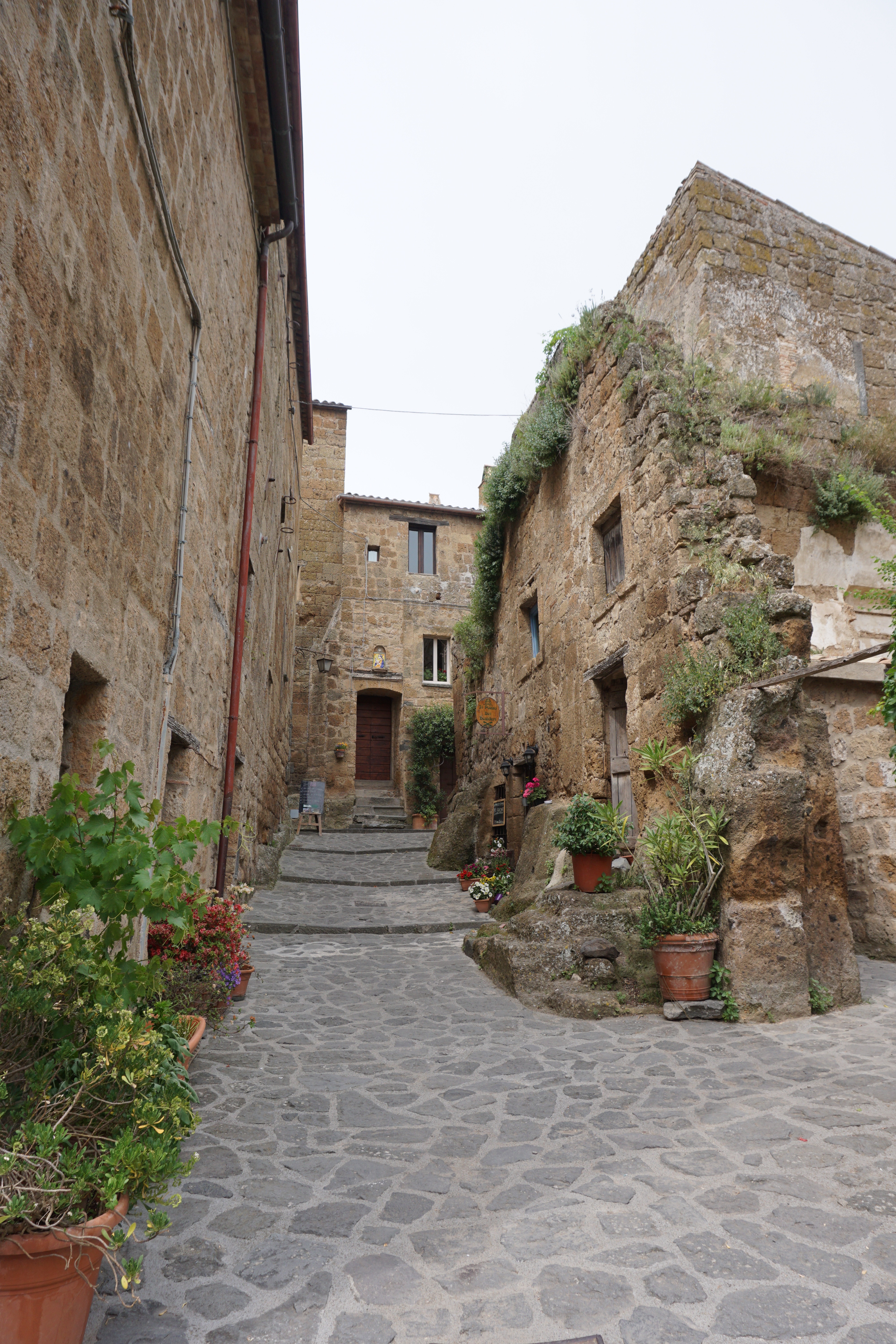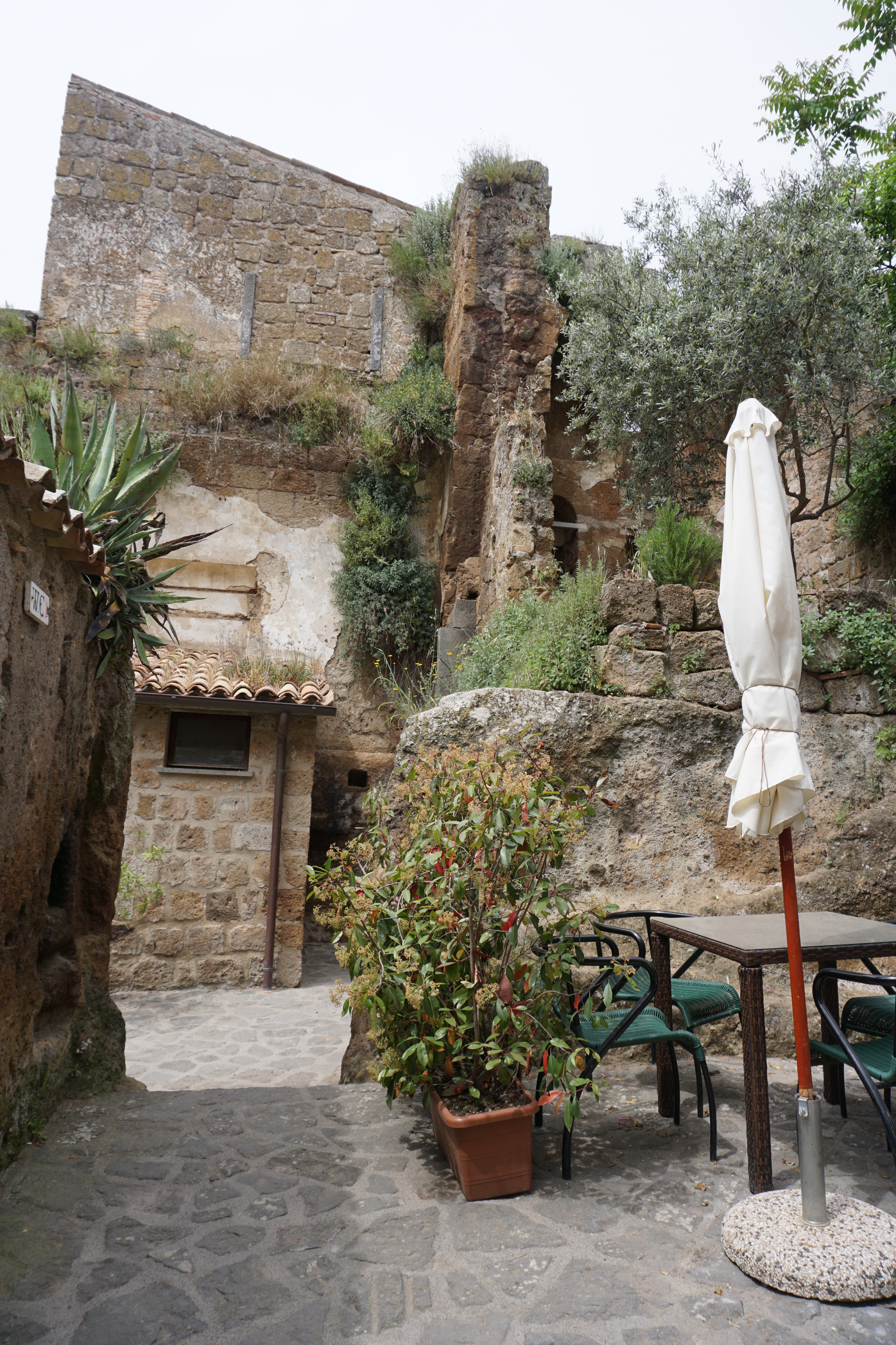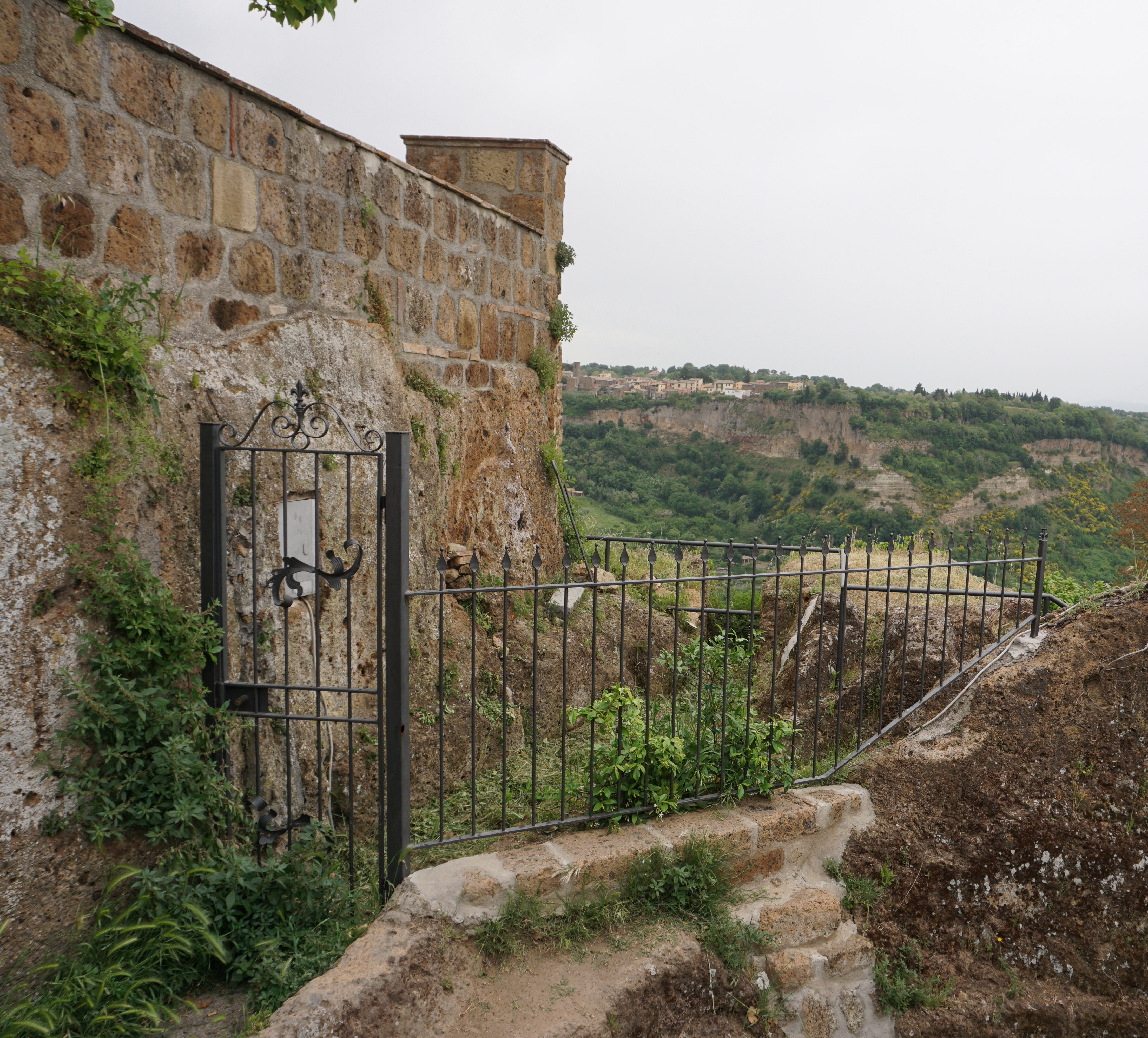 While staying in Orvieto we took a day trip to this wonderful old hilltop town. It is truly a hilltop town now as the only way to access it is through a very modern, long and inclining footbridge. Since a major earthquake in the 1600’s the surrounding area has gradually fallen, eroded and shifted to leave this beautiful old Etruscan town balancing atop, all alone. We took a bus from Orvieto to Bagnoregio, the town down below. As the buses had stopped running for a few hours we, of course, walked. At first it was a little imposing to think of walking over this long, swaying bridge but oh well!